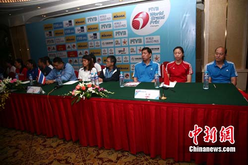 中新网成都8月5日电(杨杰 张浪)2010世界女排大奖赛成都赛区将于6日下午在荷兰与泰国的较量中拉开帷幕。5日下午,抵蓉参赛的波多黎各、泰国、荷兰和中国队的主教练接受了媒体记者采访,均表示要积累经验,全力一战。