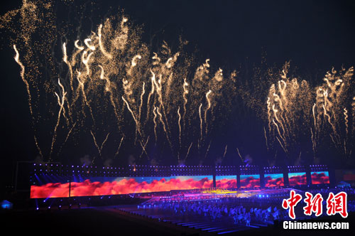 中新网鄂尔多斯8月12日电 首届鄂尔多斯国际那达慕大会昨晚在内蒙古自治区鄂尔多斯市隆重拉开帷幕。当晚的开幕式文艺演出在新落成的那达慕大会会场举行,由《梦回草原》、《梦醒草原》、《梦圆草原》和《鄂尔多斯乘着梦的翅膀》等四个篇章组成,包括腾格尔、德德玛、凤凰传奇等蒙古族艺术家以及维塔斯、wonder girls组合等国际明星的助阵,让夜色中的鄂尔多斯绽放出耀眼的光芒。