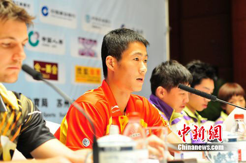 王励勤、刘诗雯、“瓷娃娃”福原爱、德国名将波尔等出席了今天的新闻发布会。无缘今年莫斯科世乒赛的老将王励勤表示,这次比赛高手云集,是很好的锻炼机会,他表示自己“不会退役”,要全力冲击伦敦奥运会的参赛名额。波尔坦言“中国队太强大”,他希望打出好成绩,从而推动德国乒球运动的发展。战绩并不很出色的福原爱,熟练的讲着带有东北味的汉语,人气超高。