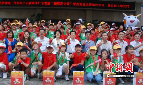 中新网广州8月19日电 (记者 莫非 程景伟)“这是一次令人难忘的活动,我们了解有关亚运的知识、参观亚运训练场,还了解了运动员如何通过训练,换来好成绩。”来自粤北韶关的留守儿童刘梅霞告诉记者。19日下午,由广东团省委、广东省福彩发行中心等单位联合举办的“我为亚运添光彩”——广州亚运小记者牵手广东“福彩夏令营”营员迎亚运活动在冠军训练营——广州体育职业技术学院举行。