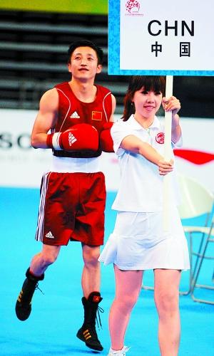 武搏运动会拳击比赛昨晚在奥体中心打响。拳击项目形象大使、北京奥运会冠军邹市明亮相男子46至49公斤级1/4决赛,以13比1的巨大优势击败一名波兰选手挺进半决赛。别看小邹在拳台上挥拳虎虎生风,但当记者提起前来为他助阵的未婚妻时,“拳王”竟然羞红了脸。