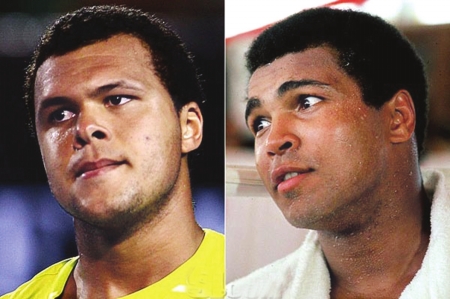 自从特松加一炮走红时,他就被外国媒体送上了一个绰号——法国阿里,这位高大的法国小伙子的确和拳王阿里非常相似,不论是他虎背熊腰的身材还是他憨厚的表情,特松加都酷似拳王。而更让人惊讶的是,略带点野性的特松加喜欢“吞网球”,他在球场上灵活的步伐似乎也有阿里蝴蝶舞步的影子。