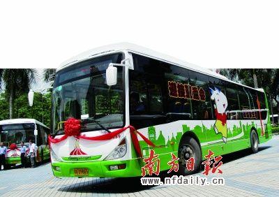 这批亚运专线车全部喷涂了统一的亚运专用标识,既有亚运吉祥物“乐羊羊”的身影,又有作为广州新地标的新电视塔图案,色彩明快、活泼,充分凸显“绿色亚运、激情盛会、环保交通”的主题。
