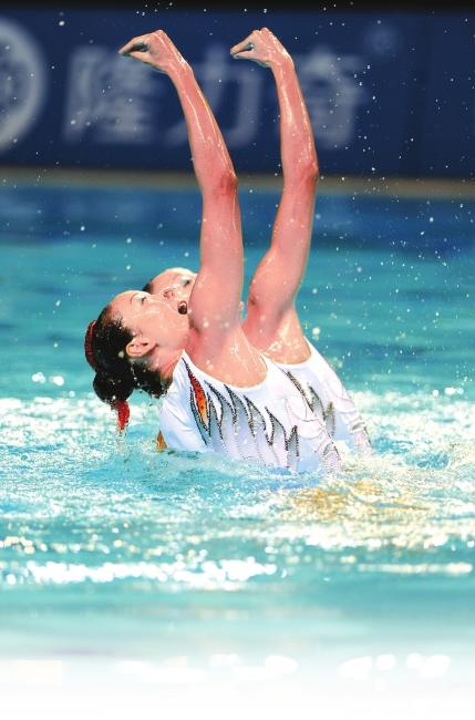 昨天上午,蒋文文和蒋婷婷就以一曲激情洋溢的《弗拉明戈》获得了预赛的冠军。在那套动作中,姐妹花不论是难度还是艺术都堪称完美,赛后,姐妹花也满意地表示,如果决赛有这个发挥就好了。没想到,晚上的决赛,姐妹俩发挥得更好,一曲《鹤之灵》难度很大,这对“世界上最美的腿”在水中把仙鹤的灵动和高贵表演得惟妙惟肖,特别是难度最