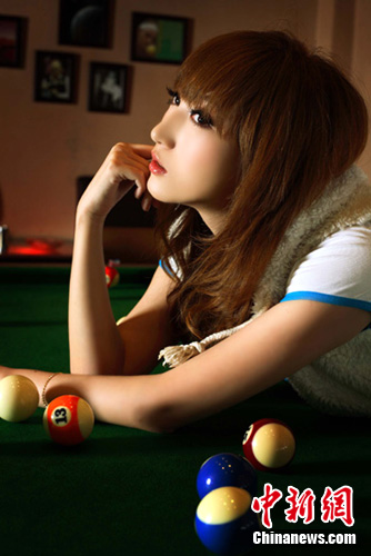 台球宝贝写真大秀美腿 球台畔现另类性感(组图)(3)