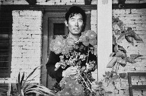 2006年,补登安纳普尔那峰成功后,极度瘦削的洛则在当地一家小旅馆的牡丹花丛中照相留念。