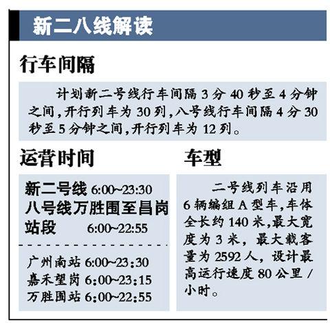明日上午6时,地铁新二号线将开通。届时八号线万盛围站至昌岗站,也将于明日6时开通。同日,四号线车陂南站至黄村站开通试运营。