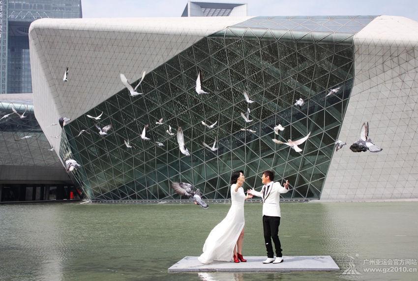 | 孙楠毛阿敏在广州大剧院前演绎亚运会主题曲《重逢》MV |