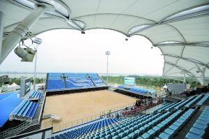 亚运城里另一处比赛场馆就是沙滩排球场,在亚洲起步较晚的沙滩排球赛由于观赏性和娱乐性强,已经成为最受欢迎的运动之一。广州亚运会的沙滩排球场更是养眼,球场位于亚运城东部风景优美的亚运公园内,东临莲花山水道,拥有无敌江景和清新空气,让运动员能充分享受阳光沙滩。