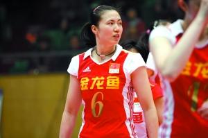首发出场的老将周苏红“接应”成功。本报记者 田颖 摄