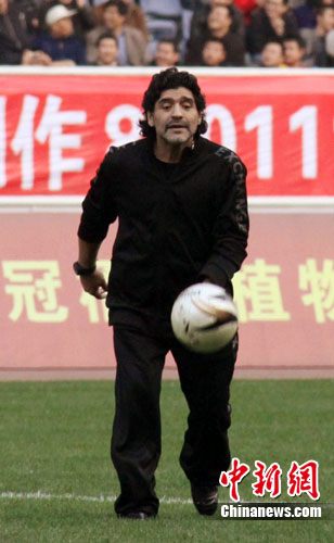 马拉多纳亮相济南 未秀球技仍“引爆”全场(图)(3)