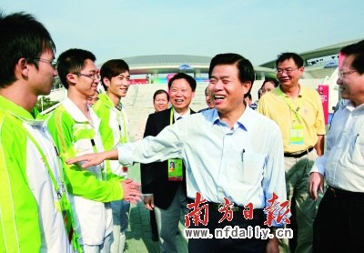 昨日,在广州亚运会即将开幕前夕,广东省长、省“三会”筹办工作领导小组组长黄华华率亚组委、省“三会”办、省政府办公厅、省体育局等有关部门负责同志,到奥体中心、海心沙和亚运会、亚残运会总指挥部现场考察,检查亚运场馆运行团队及指挥中心运行情况,要求更加细致、更加高效地推动各项筹办工作的落实,确保广州亚运会、亚残运会顺利成功举办。在听取了开闭幕式运行团队、奥体中心游泳馆团队、奥体中心网球馆团队和奥体中心场团队情况汇报后,黄华华作了重要讲话。张广宁、林木声、万庆良等省市领导陪同考察和检查。