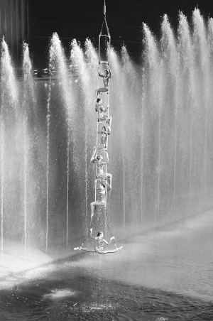 表演结束,本报记者在地下通道里,遇到了这些演员。记者才了解到,这些演员全部来自莫斯科。金发碧眼的埃尔维拉是个俄罗斯姑娘。她说:“跳水的小伙子们都是二十四五岁。”