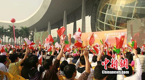 中新网广州11月11日电(黄雪琴)11日上午9时30分,第16届广州亚运动会火炬传递(广州站)最后一站传递活动在广州大学城举行。扬扬、朗朗、章子怡、钟南山等130位名人齐上阵,亚运激情在广州大学生中激荡。
