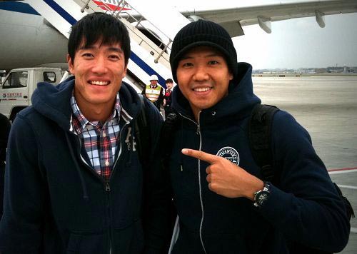 台湾艺人“黑人”陈建州与刘翔同机抵达广州。他也在第一时间将这一“幸运”展示在微博上:“我一早飞到广州的飞机上旁边竟然坐的是‘刘翔’啊!一路上我们一直聊天,他还录了一段给范范(陈建州未婚妻范玮琪)祝福的话……到时跟大家分享吧,祝福他顺利夺金。”