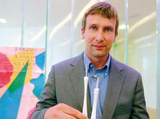 11月14日晚,广州新电视塔顶层,在这个尚未开放的区域,这座“小蛮腰”的设计师马克(MARK HEMEL,见上图)接受了羊城晚报记者专访。马克的记忆,还停留在亚运开幕式那晚电视塔璀璨夺目的那刻,他既惊叹又感慨,连连称:“‘女儿’终于出阁了!”