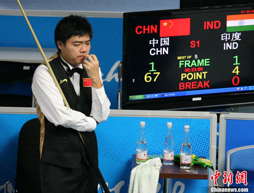 中新网广州11月15日电(记者 宗晨亮)在低迷了两轮之后,丁俊晖终于找到手感。凭借着他的神奇发挥,中国队以3比1力克印度队,卫冕斯诺克男团金牌。