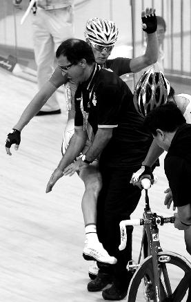 男子记分赛也出现类似情况。最后一个弯道,韩国选手赪浩成与乌兹别克选手沙耶霍夫发生激烈碰撞,后者被自行车碾过。