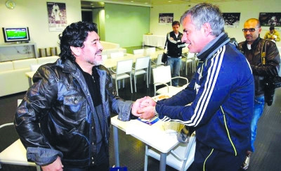 昨天,马拉多纳造访了皇马的训练营,与穆里尼奥有一番很友好的交流。交流之后,马拉多纳在公开接受采访时指出,他认为穆里尼奥短时间内就能率领皇马夺取欧冠,同时他指出,全世界能让他马拉多纳追着索要签名的人不多,穆里尼奥算一个!