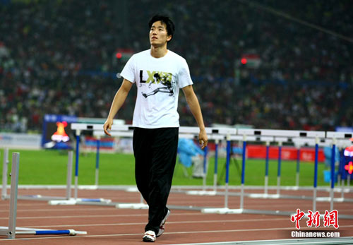 中新网广州11月24日电(记者 沈晨)广州亚运会男子110米栏决赛前1个小时,刘翔身着一件印有“广州”字样的白色T恤,在奥体中心田径训练场的跑道上进行着跨栏练习,他的身旁便是当晚的竞争对手、队友史冬鹏。