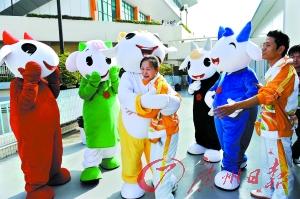 吉祥物的热情拥抱。
