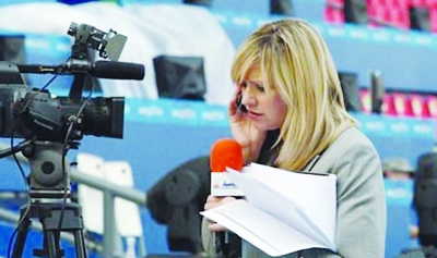 有刘翔的比赛,媒体也会为之疯狂!在距离刘翔比赛还有3个多小时的时候,不少电视媒体已经在跑道一侧抢占有利地形,进行采访准备,这其中半岛电视台的美女主持人谋杀了不少菲林,她的风头盖过了熟悉刘翔的央视记者冬日娜,她告诉记者,今天是为刘翔而来!“我10天前来到广州,但今天是我第一次来田径赛场,除了卡塔尔的运动员,我最关注的就是刘翔!”