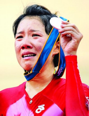 一场自行车赛事故,让人们认识了坚强的姑娘黄蕴瑶。这位中国香港选手在撞车后造成了肋骨骨裂与气胸,但她强忍着疼痛返回赛场,坚持到了比赛结束,并最终获得银牌。在颁奖仪式前,黄蕴瑶一边痛哭一边接受颁奖。在颁奖台上流泪的常见,但像黄蕴瑶哭得这么厉害的还不多见,估计除了激动之外,巨痛也是她痛哭的原因。颁奖仪式后,她的教练早早准备好了轮椅推她到了混合采访区。面对记者,黄蕴瑶边哭边说:“我哭的原因是,这场比赛对我来说很重要,因为奥运会后就没有这个项目了,亚运会是最大的赛事,没能拿到金牌所以我哭了。 ”
