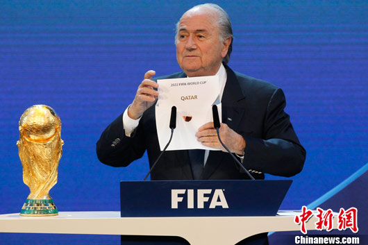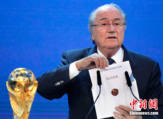 中新网12月3日电 综合报道 北京时间12月2日23时38分(当地时间16时38分),2018年与2022年世界杯申办投票结果在瑞士苏黎世会展中心揭晓。国际足联主席布拉特宣布:俄罗斯获得2018年世界杯主办权,卡塔尔获得2022年世界杯主办权。