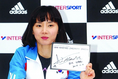 在11月19日晚上结束的广州亚运会女子花剑个人决赛中,韩国名将南贤喜以15-3轻取中国小将陈锦燕成功卫冕。回到韩国后南贤喜参加了亚运冠军的签名活动。