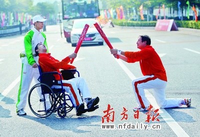 昨日的传递行程,自萝岗区科学大道绿轴广场出发,沿聚集众多高新技术企业的科学大道一路前往终点萝岗区市民广场,全程约10公里,共有100名火炬手参与传递,其中残疾人代表有21人。明日至12月11日,亚残运会火炬还将在广州进行5天的传递活动,传递总里程55公里。