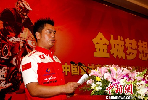 中国金城摩托车队征战第33届达喀尔拉力赛出征仪式12月11日在昆明举行,著名越野摩托车手苏文敏雄心勃勃力争取得更好成绩,为祖国争光。 赵振清 摄