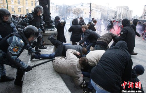 中新社莫斯科12月11日电 (记者 田冰)俄罗斯内务部长努尔加利耶夫11日表示,是激进左翼青年煽动和挑起了当天在莫斯科市中心发生的球迷大规模骚乱事件。事件中有65名闹事者被拘捕,并导致包括警察在内的近30人受伤送医。