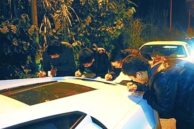 接受处罚后,尹某、周某、张某、朱某各自趴在车盖上写了检讨书。22时后,4人开着自己的豪华跑车重上成南高速公路。