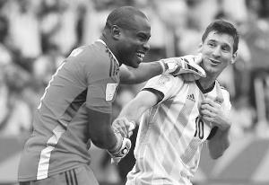 尼日利亚门将恩耶马被称为淡定帝,他和梅西的友好互动被球迷津津乐道。他是怎么评价梅西的呢?据报道,在阿根廷3比2战胜尼日利亚队中场休息时,淡定帝对主裁判说:“我一直在努力扑救,可梅西是真厉害啊!如果梅西这还不叫厉害,那我就是一坨屎。”