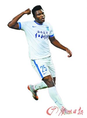 阿隆此役独进两球,状态回勇。 广州日报记者 廖艺 摄