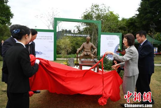 吴清源女儿吴佳澄、弟子林海峰等为吴清源铜像揭幕。 王东明 摄