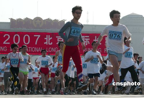中新社北京三月二十五日电(陈叶)北京奥运倒计时五百天系列活动之一的二00七年北京国际长跑节今日举行,来自海内外的一万两千余名长跑爱好者参加了此次活动。