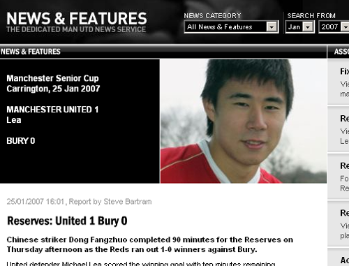 中新网1月26日电 当地时间昨天下午,曼联在预备队比赛中迎战伯利队,中国前锋董方卓在昨天的比赛中打满了90分钟,帮助曼联1-0击败对手。这是董方卓回到曼联之后打得首场比赛。