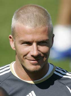 在理了“马桶盖”发型时,小贝在皇马没少被罗比尼奥等队友开玩笑,被戏称为“玛丽莲·梦露”。在上周一次训练前,被迫戴上帽子的小贝遭遇埃莫森等队友“围攻”,非得让他把帽子摘下来露出头发。更让他无法忍受的是,不少普通人也批评他的发型很失败。于是痛定思痛,小贝终于决心再换一个新发型。