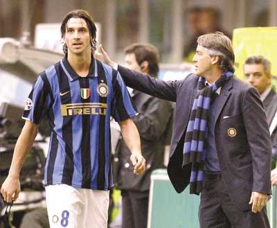原本伊布和国际米兰主帅曼奇尼的关系就不好,现在看来两人关系更糟糕。在昨天的意甲比赛中,伊布不仅拒绝和曼奇尼握手,更被怀疑嘟哝骂了他一句。
