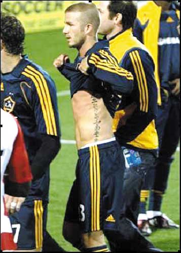 小贝访华再添新文身 肋部留下一行中国汉字(图)