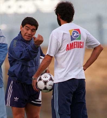 可以肯定,马拉多纳上任后将得到任何前任无法享受到的宽松环境,而在国家队内部亦然,比拉尔多已经做好了扮绿叶的准备,阿根廷队那些球员呢?梅西的才华、特维斯的凶悍,里克尔梅的智慧……这一切比起当年的老马什么都不是,阿根廷星光璀璨的队伍中没有人敢对老马说“不”,要知道这帮球星孩提时代都把老马作为效仿的榜样,有偶像督阵,谁敢不上足发条呢?更别说队内还有一个女婿要为岳父赴汤蹈火。