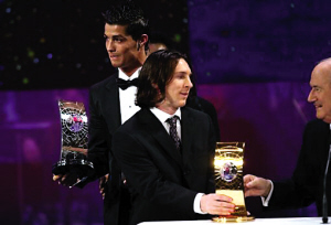 在《队报》的专访出炉前一天(11月18日),西班牙《每日体育报》已经率先披露:2008年金球奖将属于C·罗,而梅西和托雷斯则分列二三位。