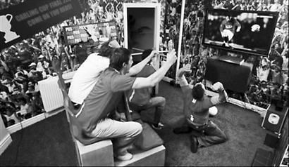 据《贝尔法斯特电信报》报道,一生都支持曼联的26岁英国小伙子菲尔因故没有能得到曼联对热刺的决赛门票,于是他开始着手把温布利“搬”回自己位于曼彻斯特的家。菲尔首先将书房的地板铺上人工草皮,然后在上面放置了一个两层的小看台,在看台上菲尔复制了球场的座椅、靠背,甚至座椅加热器。为了达到更加逼真的效果,他甚至把房间门也变成了和球场一样的十字转门。