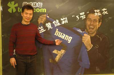 “他的疯狂来自我,来自那个点球……”昨天格罗索通过音频向黄健翔慰问,并空运送来写有“huang”的意大利队3号球衣。