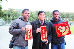 23日晚7点多,经过3天舟车劳顿的迪亚戈兄弟悄然抵穗,正式开始中国的淘金之旅。昨天,尚未调整过时差的迪亚戈兄弟便早早地来到俱乐部训练场,和刚刚从三水返穗的广药大部队汇合。长相、身高、发型、笑容几乎完全一样的巴西twins甫一亮相,便成为了训练场上的绝对焦点。正在进行折返跑的广药球员齐刷刷地将目光扫向了这对双胞胎,随后便是不约而同地惊讶和诧异,“太像了”、“到底哪个才是迪亚戈啊?”