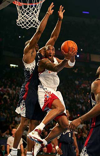 西部全明星队的首发阵容包括:科比、麦格雷迪、诺维茨基、加内特、邓肯。
