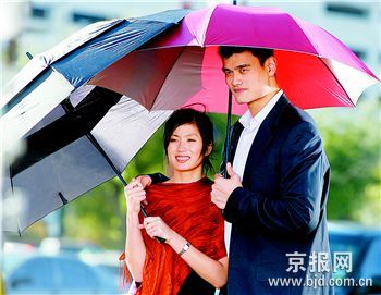 尽管因为在对国王的比赛中怒摔毛巾而可能惹上停赛的麻烦,姚明的心情看起来却没有受到什么影响。前天,他在休斯敦和太太叶莉一起参加了某保险企业的广告拍摄。在广告中,这对小夫妻上演了一段“雨中情”。