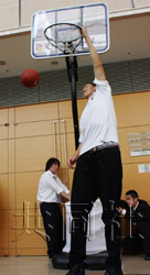 记者会结束后,正式加盟日本男篮bj联赛滨松东三河队的孙明明展示平地灌篮绝技。