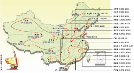 火炬境内传递历时97天,明年8月6日至8日在京传递